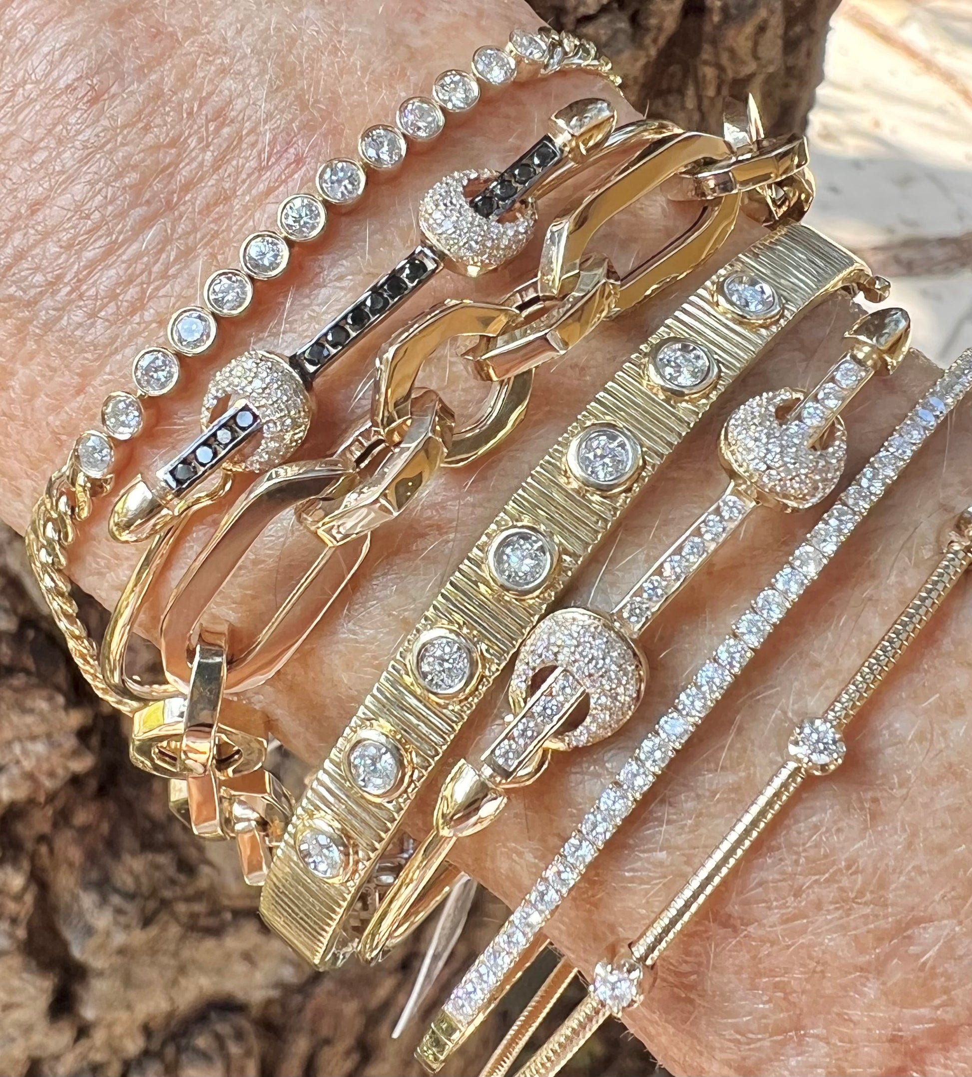 Bar wire bangle with two diamond knots